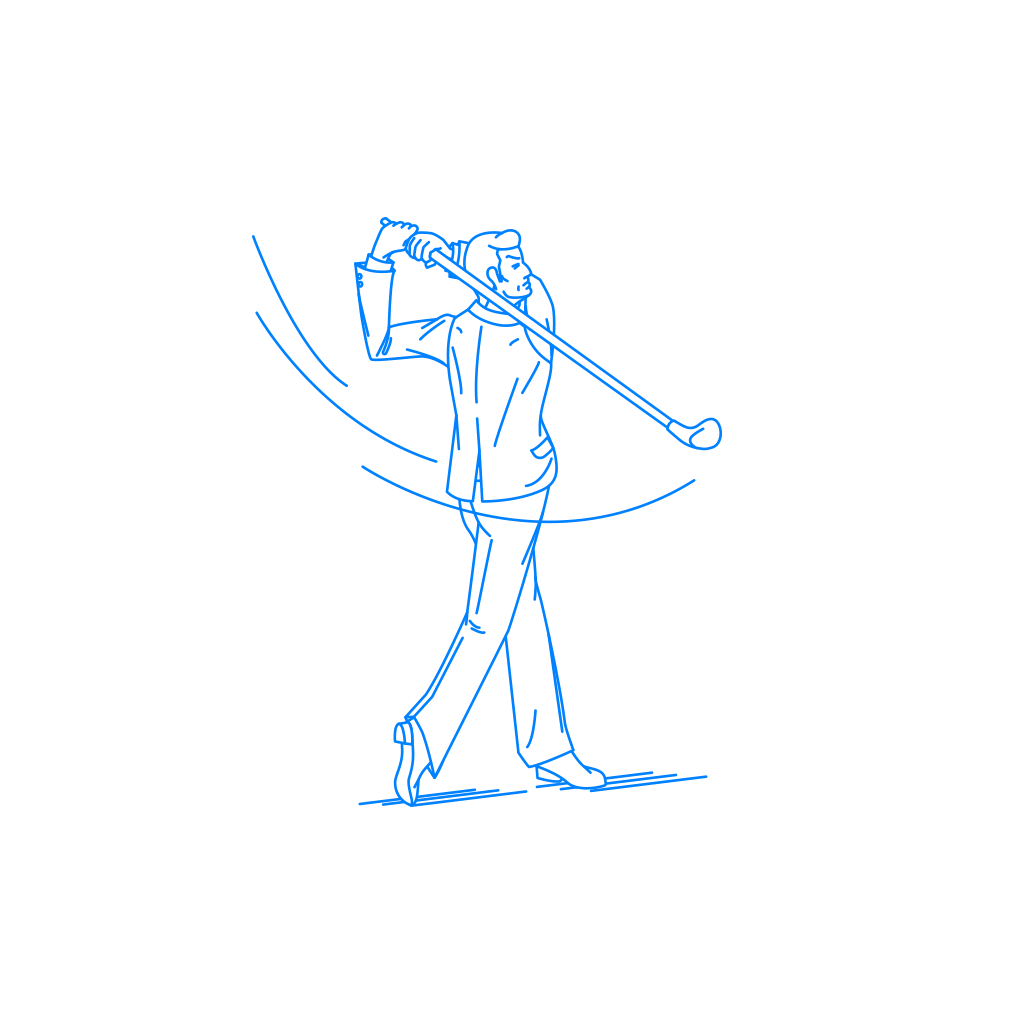 「ゴルフ」、「ゴルフスイング」、「ドライバー」、「アイアン」、「バックスイング」、「ダウンスイング」、「ナイスショット」、「ホールインワン」などのイメージとして自由にご利用いただけます。ホームページやブログ、企画書の挿絵(イラスト)としてご活用ください。