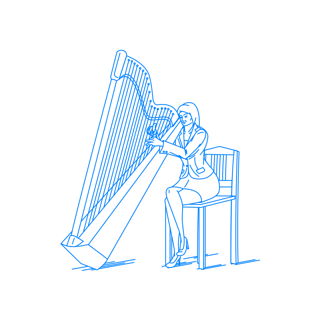 「ハープ奏者」又は「ハープ」のイメージとして。