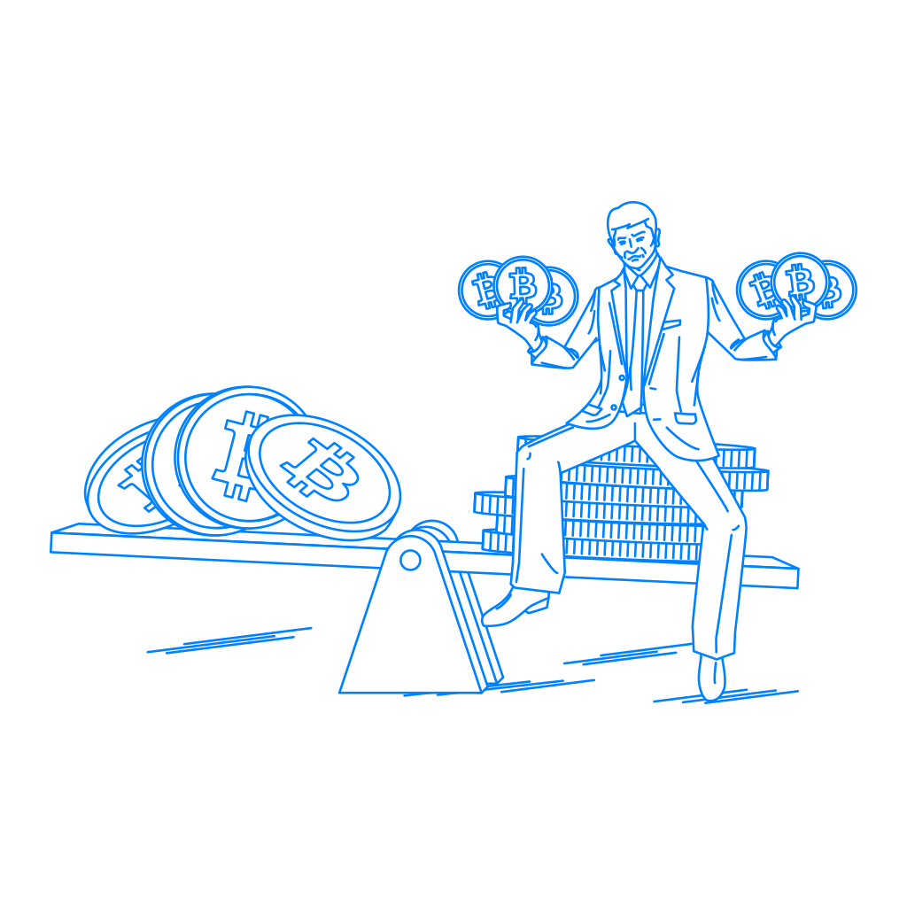 「仮想通貨」又は「買い占め」、「ビットコイン」などのイメージとして自由にご利用頂ける挿絵(イラスト)です。て。