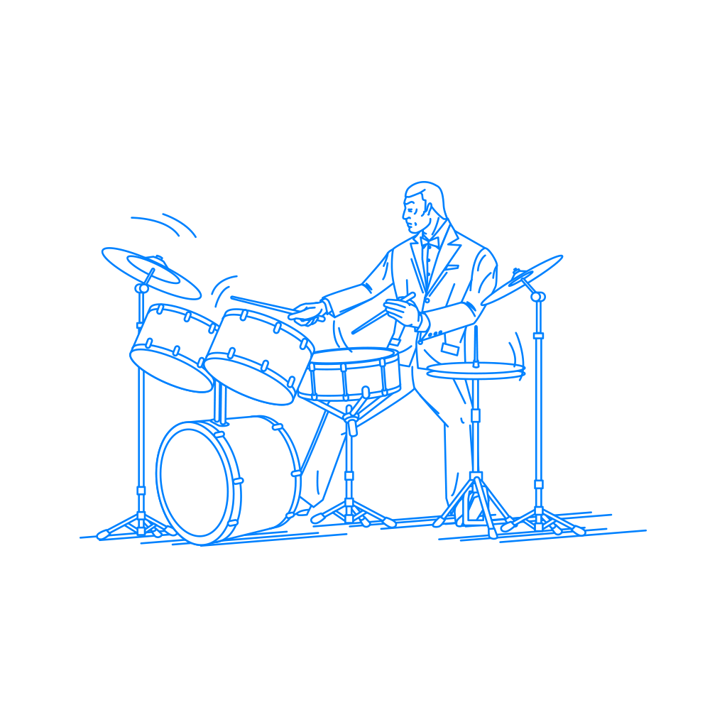 「ドラマー」又は「ジャズドラマー」、「ドラム」、「ビート」などのイメージとして自由にご利用頂ける挿絵(イラスト)です。