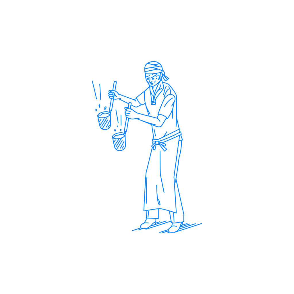 「料理人」又は「ラーメン職人」、「湯切り」、「厨房」や「調理」、「職人」などのイメージとして自由にご利用頂ける挿絵(イラスト)です。