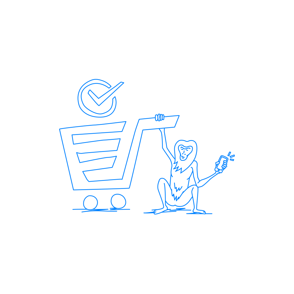 「キャッシュレス決済」、「お買い物」、「サルでも出来る」などのイメージとして自由にご利用頂ける挿絵(イラスト)です。