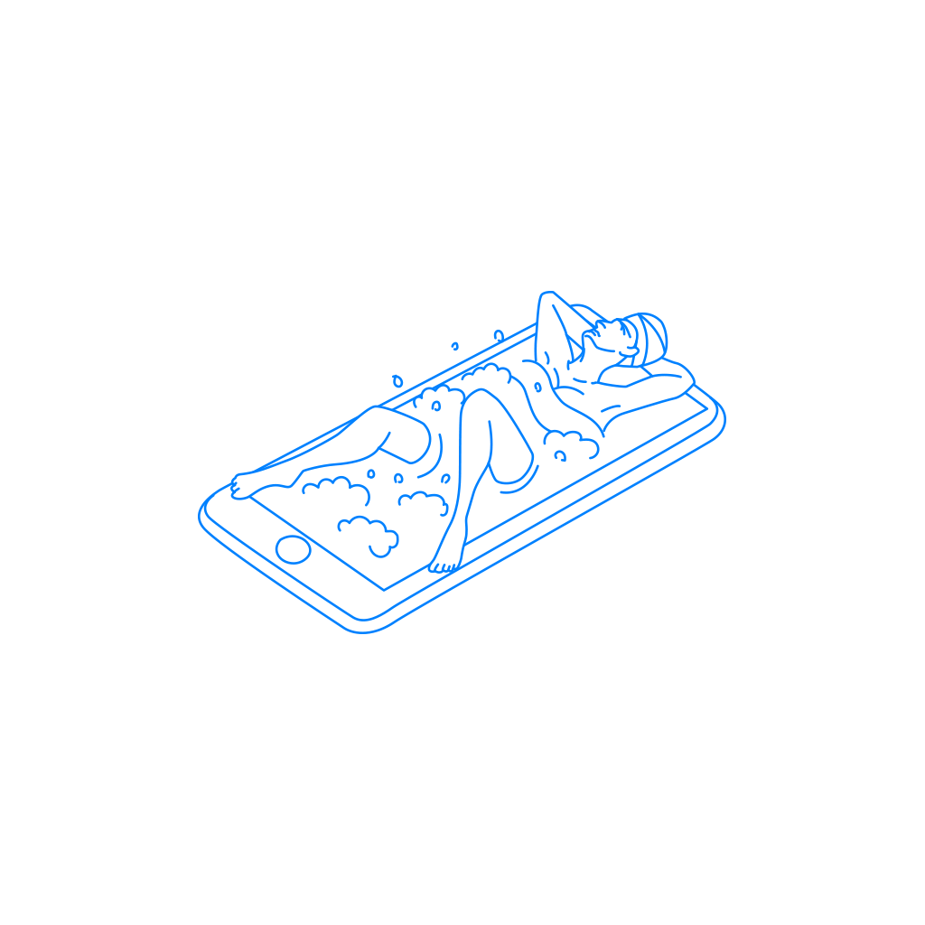「スマホ依存症」又は「入浴」、「リラックス」などをイメージした挿絵として自由にご利用頂けるイラストです。