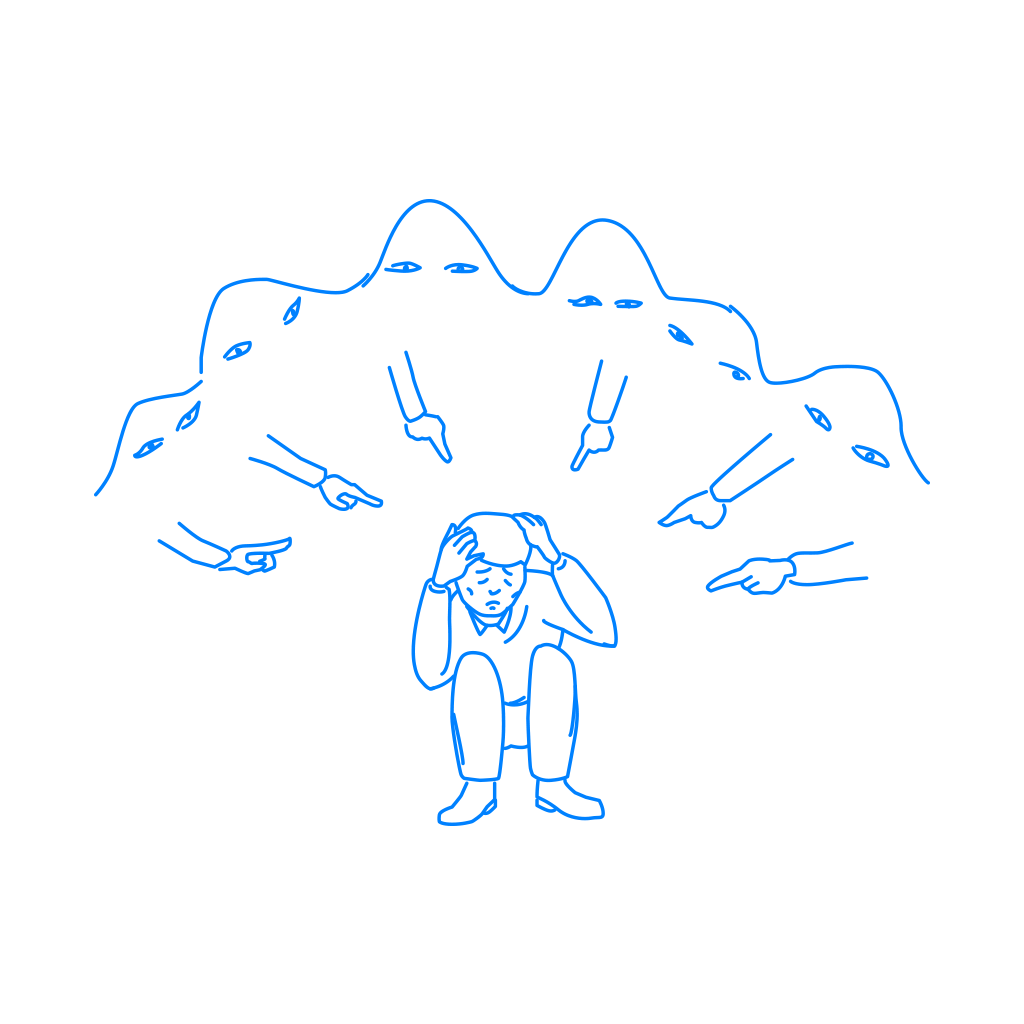 「同調圧力」、「世間の目」、「プレシャー」、「悩み」などのイメージとして自由にご利用頂ける挿絵(イラスト)です。