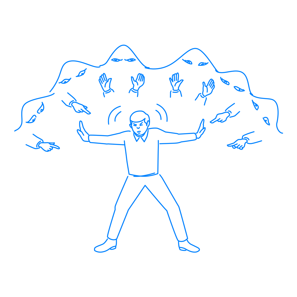 「同調圧力」や「世間の目」、「パワハラ」、「モラハラ」、「イジメ」などのイメージとして自由にご活用頂けます。ホームページやブログ、企画書の挿絵としてご活用ください。