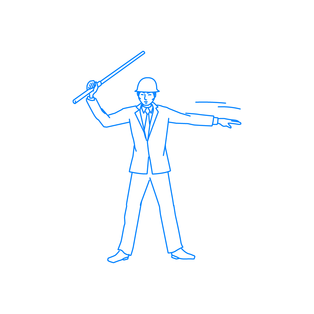 「交通整理」、「交通誘導」、「交通規制」、「誘導」、「誘導棒」、「ジェスチャー」、「警備員」、「警官」、「秩序」、「安全」、「安心」、「円滑」、「セキュリティー」、「停止指示」、「停止」、「ストップ」、「命令」、「指示」などのイメージとして自由にご利用いただけます。ホームページやブログ、企画書の挿絵(イラスト)としてご活用ください。